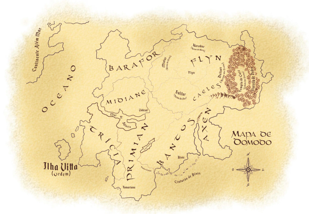 Abaixo, coloquei uma imagem do Mapa de Domodo. Finalmente, né? rs… Devia ter feito isso há muito tempo. De preferência, nos primeiros capítulos, mas como alguns desses lugares foram nascendo durante os capítulos, não seria de grande ajuda. Agora, sim, está tudo no lugar, ou quase, rs. O mapa ainda é um esboço, mas espero que ajude a clarear a mente de vocês.